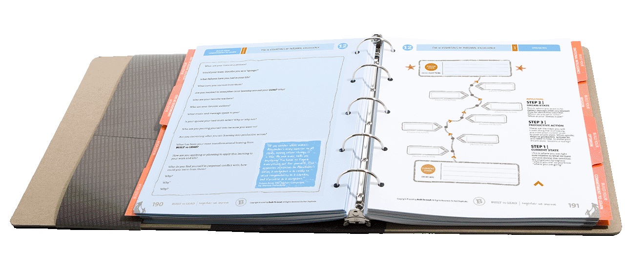 2. Build your pursuit of personal excellence. All are BUILT TO LEAD. We cannot lead others farther than we have led ourselves. Leaders understand that their toughest leadership challenge is leading themselves with excellence. Leaders apply the 12 Essentials of Personal Excellence. Leaders teach them to their teams.