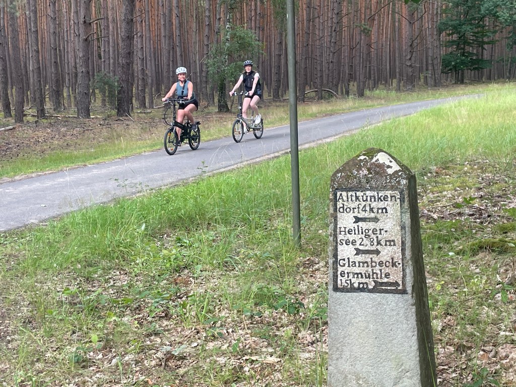 However, as we rode through a tiny, non-descript village, an elderly woman, her sister (I assume), and husband were approaching us in a narrow part of the path. The oldest woman appeared to be battling something as her husband pushed her wheelchair gently and lovingly toward us. Andrew, Ek, and Miss scooted by them by hoping into the vacated street. I stayed the course on the path as I was bringing up the rear, you know. Slowing to a stop, the woman in the wheelchair and I made eye contact. Andrew has oftentimes told me to leave the Germans alone as they mostly don’t want to engage with strangers. I mostly engage them, anyway. So, as we made eye contact, I smiled and greeted her and her friends. She returned the volley and then some.