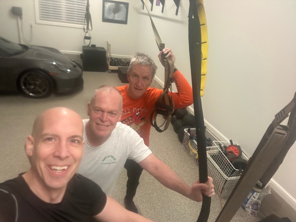 Today, the 3PP kicked off year sixteen. We were three souls strong. We got after core work for 58:58. We hadn’t been together for eight days as Miss and I were with our Berlin baby, you know. So, today, we fought Inierta and went slow. Focused on form and time under tension. I designed the workout to surprise our muscles and didn’t follow the timer to a tee. I mixed it up and improvised. We’re now beyond baby stepping. My aim is to design workouts we cannot complete. We did not start this way. We would not continue growing, however, if we didn’t change it up and shock our system. Our old workouts would be way too comfortable now. Fact.