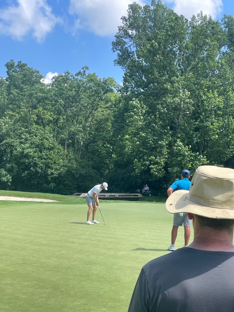 Lil Jeggie (friend and client) was also qualifying. Followed him and them for much of the sweltering day. He too has heard the Biondi story and has adopted a variety of mantra’s to keep him present when adversity wants to speed him forward or drag him back. Today, he told me, he kept telling himself he had every shot. He believed his words, not the drunk in his head (little voice). He played beautifully. Fired a nearly flawless 67. Headed to Olympic Club for the first time. He’s in the final field of the oldest golf tournament in America. It was his day. So, so happy for him.