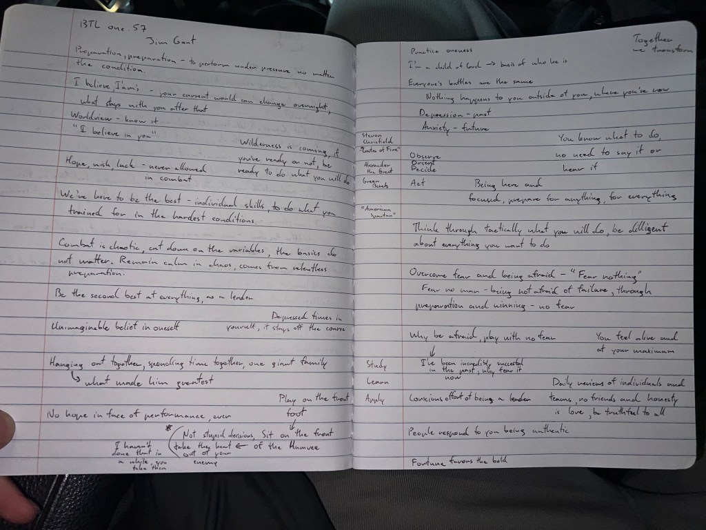 Well, the most common question asked was around how did he maintain his calm in the chaos of combat. Remember, he was in combat, at one point, for 22 straight months. Bin Laden had multiple suicide bombers on mission to take him out. Thank God, they never were able. So, this dude has seen the shit. Lived to tell a few who will listen. Here’s what he said about maintaining calm in chaos.